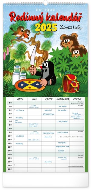 Je pre vás rodina na prvom mieste? Zorganizujte všetky rodinné aktivity v praktickom plánovacom kalendári s klasickými ilustráciami Krtka od Zdeňka Milera. Kalendár obsahuje české kalendárium a samostatný plánovač aktivít pre až päť členov domácnosti.