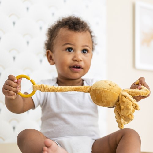 Roztomilá chobotnička, so svojou krásnou srsťou, si podmaňuje srdce novorodencov po celom svete. Rozkošná chobotnička ponúka nespočetné možnosti uchopenia a podporuje tak rozvoj motoriky. Navyše je tu integrovaná vibračná funkcia, ktorá hravou formou vycibrí hmat a sluchové schopnosti dieťaťa a poskytne dostatok zábavy.