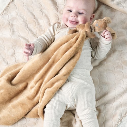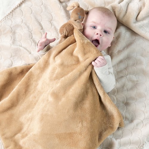 Deka Lapidou s motívom zajačika je mimoriadne mäkká a príjemná – ideálna na prikrytie, zahriatie alebo maznanie. Vďaka svojmu všestrannému využitiu je nepostrádateľným doplnkom a spoločníkom, či už doma alebo na cestách. Okrem toho je vybavená mini plyšovým zajačikom, ktorého môžu malé rúčky a prstíky ľahko uchopiť. Hebký materiál deky poskytuje príjemný pocit na dotyk. Navyše je vybavená upevňovacou šnúrkou, aby sa cumlík nestratil.