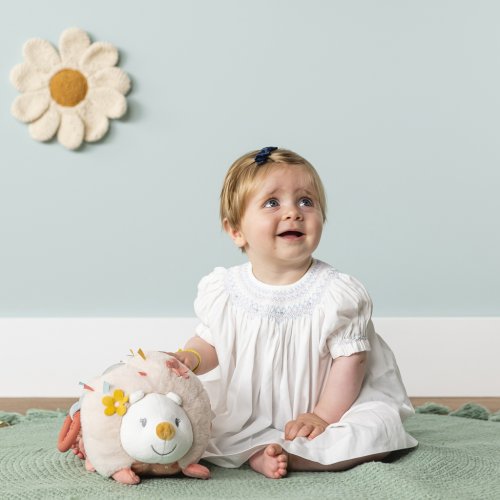 Táto krásna plyšová hračka s rôznymi aktivitami poskytuje vášmu dieťatku hodiny zábavy. Zábavné aktivity, ako je vstavaná hrkálka, silikónové hryzátko, zrkadlo a štítky, povzbudzujú vaše dieťatko, aby objavilo a uchopilo hračky. Hravou formou sa tak stimulujú reflexy uchopenia a motorický vývoj vášho dieťatka. Mäkká srsť plyšovej hračky ježka taktiež poskytuje pocit bezpečia a istoty. Verný spoločník na hranie, ktorý prináša radosť a pohodlie už od narodenia, ako aj skvelý tip na darček pre vaše bábätko.