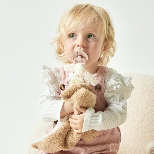 Náš maznáčik je nerozlučný kamarát vášho bábätka už od narodenia – prináša pocit istoty, pokoja a pohodlia v každej situácii. Je ideálny na maznanie v postieľke, upokojenie na cestách či hranie v ohrádke. Mäkučká dečka s milým motívom ponúka množstvo úchopových možností, ktoré podporujú rozvoj zmyslov a jemnej motoriky. Dieťatko môže pohodlne chytať hlavičku zvieratka alebo zaujímavé visačky po stranách. Praktické pútko umožňuje pripevniť cumlík, aby bol vždy po ruke.