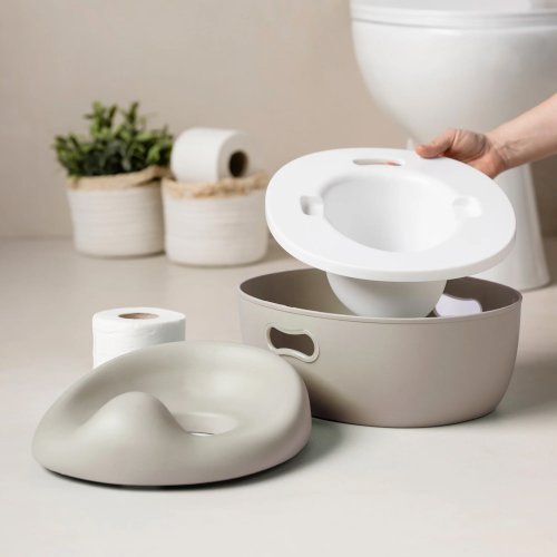 Objavte Potty, evolučný 3v1 nočník, ktorý rastie s vašim dieťaťom! Tento inovatívny nočník je navrhnutý tak, aby bol nácvik na nočník jednoduchý a pohodlný. Potty začína ako nočník pre batoľatá a ako vaše dieťa rastie, premení sa na redukčnú záchodovú doštičku s praktickým schodíkom.