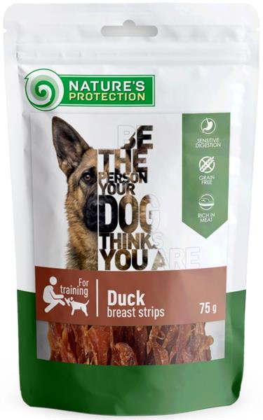 Doplnkové krmivo pre psov Nature's Protection Dog Snack Duck Breast Strips - prúžky z kačacích pŕs. Hlavné prednosti:
