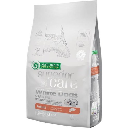 Nature's Protection Superior Care Dog Dry White Dospelé psy malých plemien bez obilnín s lososom 1,5 kg
