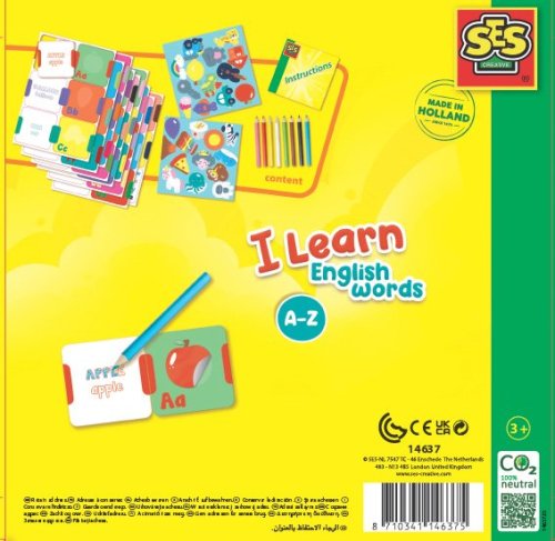 Chcete sa naučiť nejaké nové anglické slovíčka? Práve to môžete urobiť s touto krásnou, ilustrovanou sadou I learn! Priraďte farebné nálepky k správnym prvým písmenám a potom nájdite správne kartičky so slovami. Umiestnite karty v správnom poradí. Ak ste uviedli správne slovo, farebné testovacie oblasti sa budú zhodovať. Vyfarbovaním slov sa aktívne učíte hláskovať slová a krok za krokom sa učíte viac a viac anglických slov. Obsahuje: 52 kariet s písmenami a anglickými slovami, 8 pasteliek. Vek: 3+