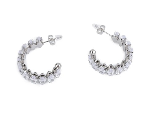Náušnice z kvalitnej nerezovej ocele sú celé vysadené brúsenými kamienkami v tvare navetok. Majú oslnivý ligot, sú neprehliadnuteľné. Hodí sa k slávnostným šatám, ale využijete ich aj na bežné nosenie. Majú tvar neuzavretého kruhu. Puzeta je s kovovou zarážkou proti vypadnutiu.