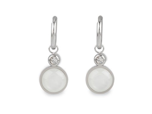 Náušnice krúžky sú vyrobené z kvalitnej nerezovej ocele. Dole sú ozdobené príveskom s brúseným kamienkom a vsadenou imitáciou perlete, ktorá má nádherný efekt mačacieho oka. Sú veľmi elegantné, oceníte ich na každodenné nosenie, ale aj na slávnostné príležitosti. Skvele doplní biznis štýl obliekania, ležérne outfity aj spoločenské šaty. Dajú sa roztvoriť, zapínajú sa zacvaknutím. Prívesok je možné z krúžku zložiť a nosiť ho len samotný, neozdobený.