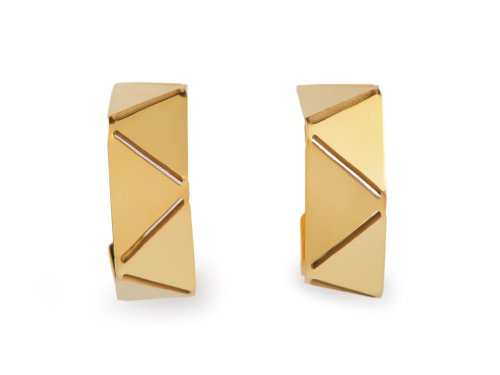 Elegantné náušnice z kvalitnej nerezovej ocele majú tvar neuzavretého kruhu. Zaujmú svojim lomeným dizajnom, ktorý pripomína origami skladačky, skvele doplnia biznis štýl obliekania, jeansovú módu, ležérne outfity aj spoločenské šaty. Majú vysoký lesk. Puzeta je s kovovou zarážkou proti vypadnutiu.