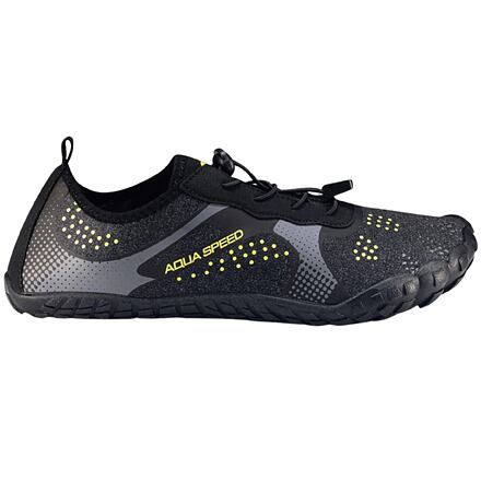 Tieto multifunkčné topánky AquaSpeed Nautilus boli vytvorené pre vodné športy aj klasické športy. Využijete ich pri plávaní, windsurfingu, šnorchlovaní, na plážové športy, jogu, cyklistiku, do posilňovne a pod. Zvršok topánok je vyrobený z pružného, priedušného, rýchloschnúceho a ultraľahkého materiálu, ktorý zaisťuje dostatočnú ventiláciu chodidla a pohodlie pri používaní. Podošva z vysoko kvalitnej, ľahkej a veľmi pružnej gumy poskytuje trakciu a ochranu na rôznych povrchoch. Oceľová sieťovina vo vnútri podošvy dodatočne chráni chodidlo pred porezaním (ostré kamene, hroty morského ježka atď.). Otvory v podrážke odvádzajú vodu z topánky. Čiastočne profilovaná stielka z ľahkej a pružnej peny dobre tlmí chodidlo pre väčší komfort pri nosení. Jej štruktúra umožňuje správne vetranie a odvod vody. Elastické šnúrky upevňujete jednoducho pomocou nastavovacieho cvočku . Použité materiály a technológie výroby zaručujú pohodlie a vďaka atraktívnemu dizajnu topánky vyzerajú na nohe skvele. Veľkosti zodpovedajú veľkostiam EÚ. Tabuľku nájdete v obrázkoch ch. Uvedené hodnoty sú iba orientačné as ohľadom na konkrétny tvar nohy sa môže vhodná veľkosť líšiť!