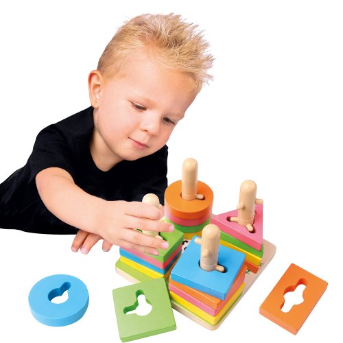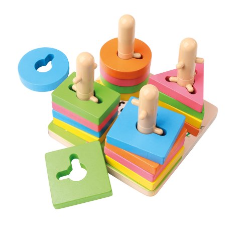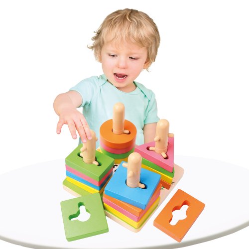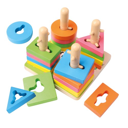 Rôznorodé typy kociek týchto detských hračiek je možné kreatívne skladať na seba a účinne tak rozvíjať predstavivosť vášho dieťaťa. Dizajn stĺpcov a otvorov je ideálny na hranie párovej hry. Rozvojové hračky s krásnou farbou upútajú pozornosť detí, ktoré si s touto hračkou užijú zábavu. Pomôžu deťom pri hre rozpoznávať farby a tvary a zároveň precvičia ich priestorové poňatie a koordináciu ruky a oka. Vek: od 3 rokov, rozmery výrobku: 15x11, 5x15 cm, počet dielov: 21 ks, materiál: drevo.