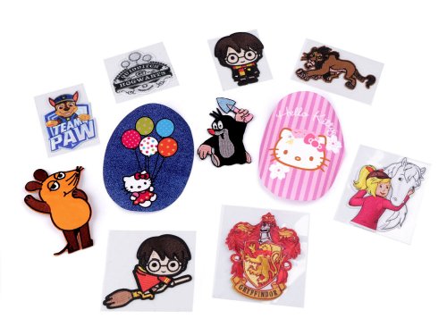 Balenie obsahuje detský mix dezénu aj veľkostí. Nažehlovačky majú šírku 35 - 85mm, výšku 55 - 115 mm. Ide o značkové motívy. V mixoch sa môžu objaviť [postavy superhrdinov Marvel, Disney, postavy z Macka PÚ, Doby ľadovej, Hľadá sa Nemo, Spiderman, autá Disney Pixar, Kráska a zviera, Tarzan, Asterix a Obelix, Mickey Mouse, Mačka Hello Kitty, Hannah Montana a ďalšie postavičky a nažehlovačky.] Nažehlovačku môžete použiť nielen na deravé oblečenie, ale môžete nimi odev aj ozdobiť. Návod použitie: Na látku priložte nažehlovačku. Potom položte na žehliacu dosku tak, aby aplikácia bola naspodku a cez ňu látka. Prežehľujte pod väčším tlakom 8 - 10 sekúnd pri 150 °C. V prípade potreby postup opakujte. Návod nájdete priamo na výrobku. [Nažehlovačky odporúčame aj prišiť, aby po praní nedošlo k ich odlepeniu.] Certifikát pravosti