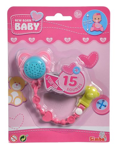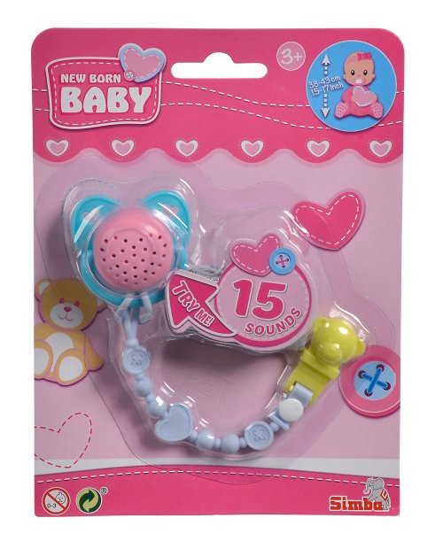 Príslušenstvo pre bábiky o veľkosti 38-43cm - cumlík s 15 rôznymi zvukmi na retiazke pre fixáciu na oblečení.