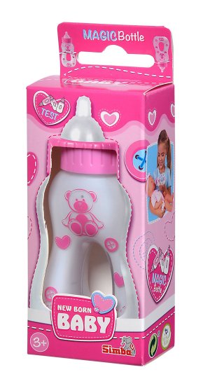 Fľaštička s miznúcim mliečkom pre bábiky. Veľkosť 13 cm.