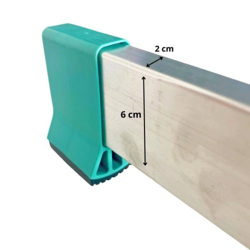 ND stabilizátor k rebríku 7612,7812 ALVE rozmery AL profilu: dĺžka 115,5 cm, šírka 2 cm, výška 6 cm pätka: výška 9 cm, šírka 6 cm, hĺbka 2,5 cm rozteč otvorov na upevnenie 43 cm