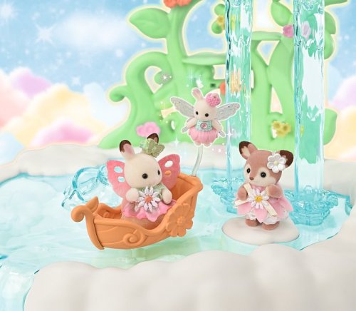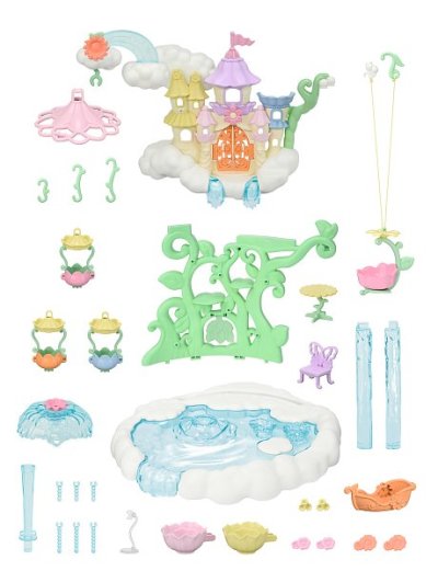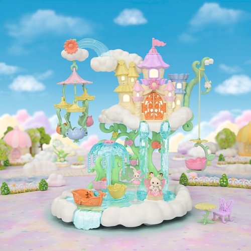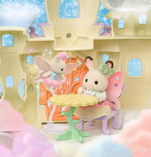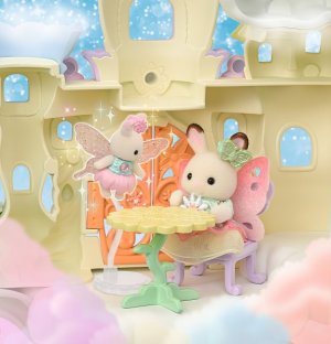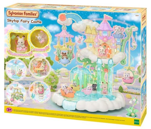 Vitajte v nebeskom paláci kvetinových víl. Tento krásny set plný atrakcií prenesie milovníkov sveta Sylvanian Families do magického sveta úžasnej zábavy. Nebeský palác je obklopený snehovo bielymi mrakmi, z ktorých vychádzajú krištáľovo čisté vodopády. Modré pramienky tryskajú bublinkami vody, vytvárajúce fontánu-kolotoč s dvoma sedadlami v tvare kvetinových kalichov. Voda z prameňa a vodopádov padá priamo do jazierka, na ktorom pláva loďka s kúzelným držiakom na kvetinovú vílu. Kvetinová víla pripevnená k držiaku vyzerá, akoby skutočne levitovala vo vzduchu. Malý ostrovček z mraku je ideálnym miestom na obdivovanie jazierka. Kvetinový výťah zavezie deti na vyhliadkovú terasu, odkiaľ majú výhľad na celé okolie. Nebeský kolotoč s tromi sedadlami v tvare kvetinových kalichov je pripevnený k mrakom, ktoré sa vznášajú nad palácom. V nebeskom paláci kvetinových víl je množstvo vzrušujúcich atrakcií, ktoré si zamilujú všetky baby zvieratká. Deti, ktoré budú chcieť odpočívať, si môžu sadnúť k malému stolíku v útulnej kaviarni. Sada obsahuje dve roztomilé figúrky malú Crème z rodiny čokoládových králikov a figúrku malého zajačika-kvetinovej víly. Sadu je možné kombinovať s ďalšími setmi z kolekcie Kvetinové víly. Hračky Sylvanian Families rozvíjajú predstavivosť a povzbudzujú deti k hraniu rolí. Hra s figúrkami rozvíja kreativitu a učí emóciám vytváraním a rozprávaním príbehov založených na každodenných zážitkoch a pozorovaní sveta. Vyznačujú sa najvyššou kvalitou a výnimočným dôrazom na detaily. Figúrky Sylvanian Families sú pokryté mäkkým semišom, majú pohyblivé končatiny a hlavu. Oblečenie je možné z figúrok zložiť a vymeniť za iný outfit. Balené v krabičke. Rozmery balenia: 35 x 44 x 14 cm. Vek: 3+