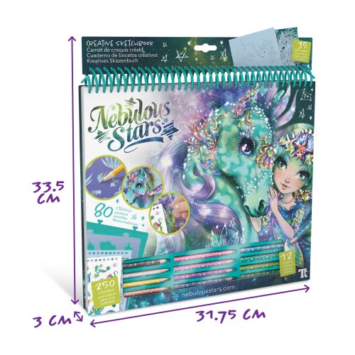 Užite si veľa tvorivej zábavy, ktorú ponúka kreatívna sada Nebulous. Tento sketchbook inšpirovaný svetom dievčaťa a jej láskou k zvieratám obsahuje všetko, čo potrebujete na tvorenie. Stačí postupovať podľa návodu na obale a obkresľovaním, vyfarbovaním, kreslením a nalepovaním budete objavovať topí tohto mystického sveta. Obsah balenia: 250 nálepiek, 12 pasteliek, 80 šablón, 35 listov s obrázkami, 4 plastové formičky na vzorovanie, 12 kresliacich techník s návodom Odporúčaný vek: od 7 rokov
