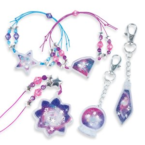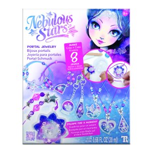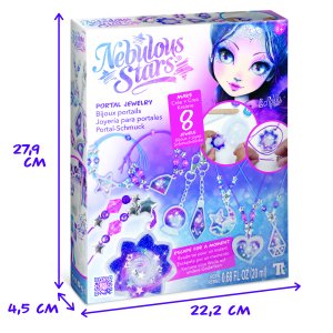Nebulous Star Portálové šperky Eclipsia. 8 základov pre tvorbu šperku, 2x fľaštička so živicou, nálepky, flitre, trblietavý prášok, nylonové povrázky, 105 korálikov, 2x háčik, 2x zapínací krúžok, nádoba a tyčinka na miešanie živice, rukavice na jedno použitie.