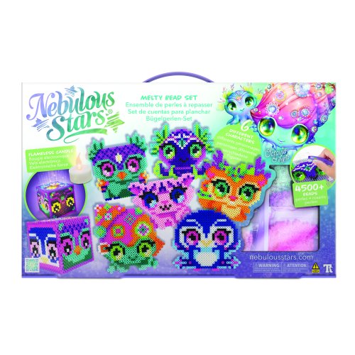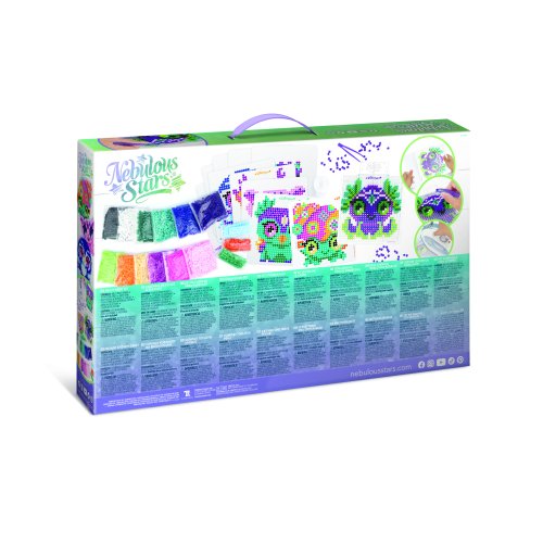 Nebulous Star Sada tavných pixelových korálikov. Obsah balenia: doska na tavné korálky, 11 kariet so vzorom, 4500+ tavných korálok, LED sviečka, plastová pinzeta, nažehľovací papier, príbeh zvieratiek Animoulous, pokyny.