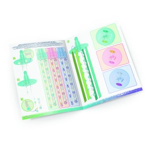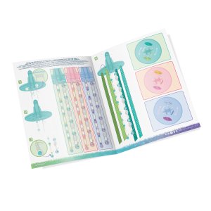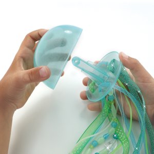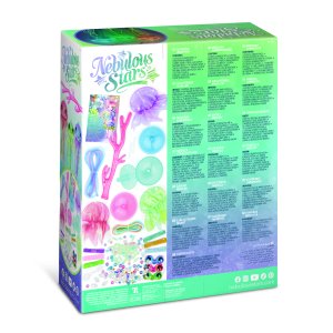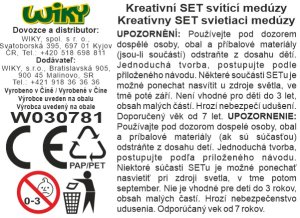 3x kupola, ktorá svieti v tme, záves z vetvičiek koralu, 3x látkový kryt klobúčika, 63 korálikov, ktoré svietia v tme, 70 farebných korálikov, 3x sieťové duté šnúrky, stužka, svietiaca šnúrka, plastový drôt, návod