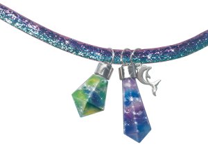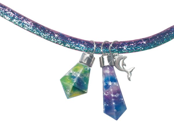 Pipetou pridajte niekoľko kvapiek atramentu na dno nádobky. Odtrhnite malý kúsok vaty a zatlačte ju dovnútra nádobky pomocou hrotu pipety, kým sa nezafarbí. Pridajte niekoľko kvapiek vody a potom pridajte na mokrú vatu ďalšiu farbu. Na okraje nádobky naneste trochu lesku. Opakujte kroky 1 až 4 so striedajúcimi sa farbami, kým nie je nádobka plná. Teraz šeptom vyslovte svoje prianie a zatvorte fľaštičku, aby ste ho udržali v bezpečí. Pripojte nádobku k páske a je hotovo, teraz stačí myslieť na svoje prianie. Odporúčaný vek: od 7 rokov