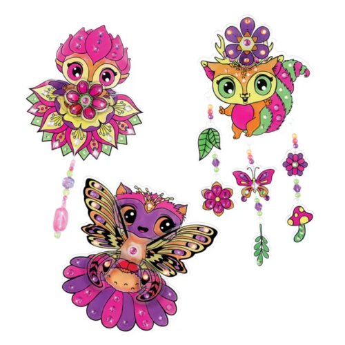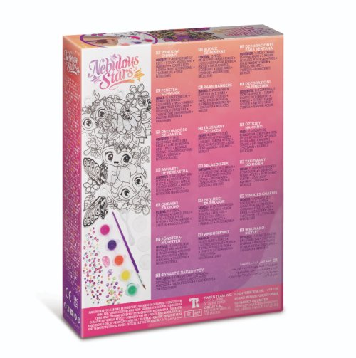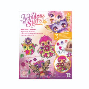 Nebulous Stars Vyrob si talizmany do okien set. Súprava na tvorbu 3 talizmanov. Obsah balenia - 15 dielikov pripravených vyfarbenie a ozdobenie, 5 farieb na sklo, štetec, korálky a špagát, rôzne kamienky, 3 prísavky. Tiež obsahuje návod a príbehy animušov.