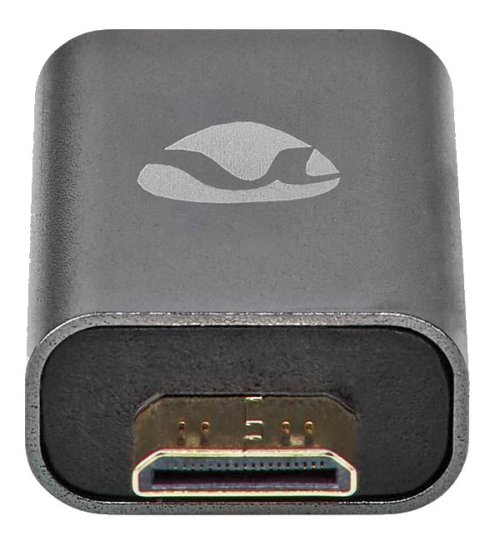 Kompaktný adaptér pre pripojenie zariadenia s mini-HDMI konektorom k televízoru alebo monitoru so štandardným HDMI vstupom.