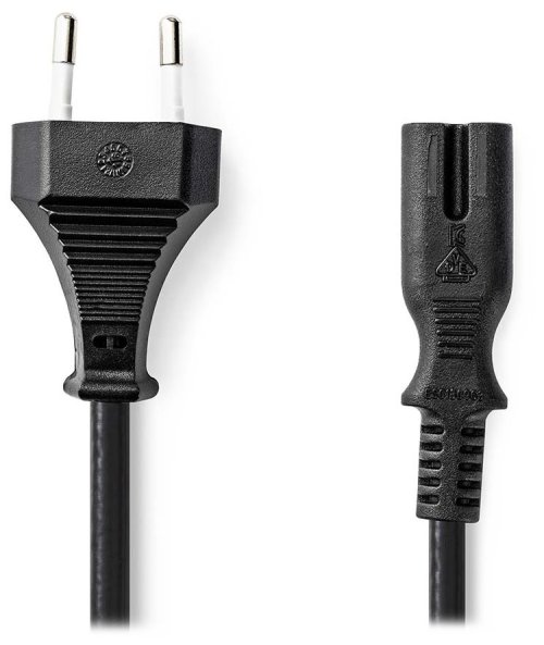 Euro Male | IEC-320-C7 | Priamy | Priamy | Poniklované | 1.00 m | Plochý | PVC | Čierna | Label