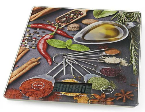 Vysoko presná kuchynská váha s odolným skleneným povrchom a dizajnovou potlačou. Váha má zabudovaný LCD displej a dotykové tlačidlá, vďaka ktorým je jej ovládanie veľmi jednoduché. Ďalej disponuje indikátorom nízkeho stavu batérie, indikátorom preťaženia a automatickým vypnutím. Pre veľmi presné váženie na 1 g je vybavená tenzometrickými snímačmi. Maximálna nosnosť je 5 kg a zobrazenie hmotnosti môžete voliť v kg alebo lb. Batéria je súčasťou balenia.