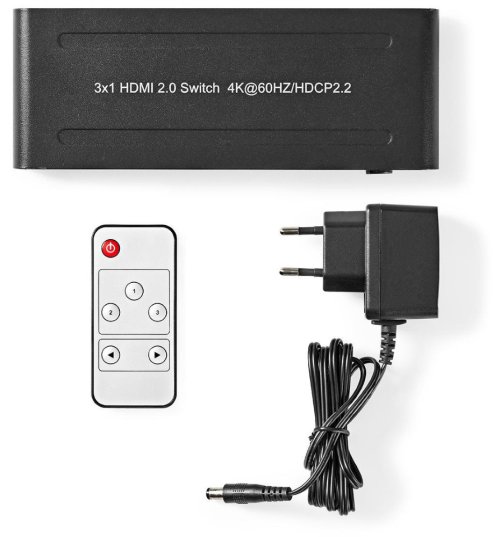 HDMI switch/prepínač 3 : 1 umožňuje, aby tri HDMI zariadenia zdieľali jediné HDMI výstupné zariadenie (obrazovku). Výber zdroja prebieha stlačením tlačidla alebo pomocou diaľkového ovládania . Zariadenie podporuje dátový tok 18 Gbps , 4K Ultra HD rozlíšenie, 3D obraz a technológiu HDCP 2.2. Súčasne tiež zosilňuje HDMI signál . Na napájanie slúži priložený napájací adaptér.