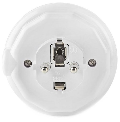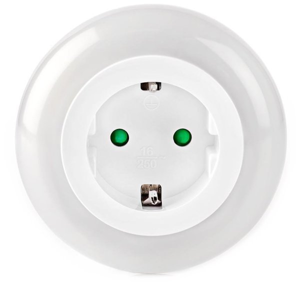 Kombinácia zásuvky a nočného svetla v jednom zariadení. Zásuvka je sieťovo napájaná (220–240 V AC) a podporuje záťaž až 3680 W . S kompaktným priemerom 82 mm a bielou farbou sa ľahko začlení do priestoru. LED osvetlenie sa vďaka integrovanému senzoru automaticky aktivuje v závislosti na úrovni okolitého svetla. Pomocou dotykového ovládania môžete ľahko meniť farbu svetla na bielu, modrú alebo zelenú.
