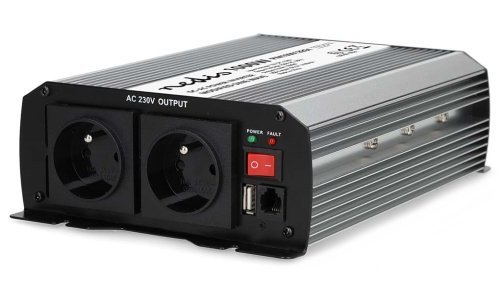 Menič napätia s výkonom 1000 W a modifikovanou sínusoidou je ideálne riešenie pre napájanie najrôznejších elektrických spotrebičov určených pre sieťové napájanie, ako napríklad notebookov, chladiacich boxov a pod. Vstupné napätie meniča je 12 V DC , výstupné napätie 230 V AC a účinnosť 85 %. Takto môžete v nákladných automobiloch, lodiach či obytných vozidlách používať domáce spotrebiče bez toho, aby ste museli investovať do špeciálneho vybavenia pracujúceho s napätím 12 V. Nie je vhodný na napájanie elektroniky citlivej na tvar vstupného napätia. Menič je vybavený dvoma napájacími zásuvkami so uzemňovacím kolíkom (typ E) a jedným USB portom s výstupným napätím 5 V DC. Samozrejmosťou je ochrana proti prehriatiu, preťaženiu, skratu, prepólovaniu (poistka), podpätiu a prepätiu. Súčasťou balenia sú káble s očkami na pripojenie k batérii.