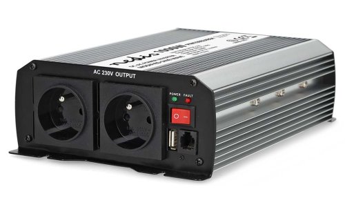 Menič napätia s výkonom 1000 W a modifikovanou sínusoidou je ideálne riešenie pre napájanie najrôznejších elektrických spotrebičov určených pre sieťové napájanie, ako napríklad notebookov, chladiacich boxov a pod. Vstupné napätie meniča je 24 V DC , výstupné napätie 230 V AC a účinnosť 85 %. Takto môžete v nákladných automobiloch, lodiach či obytných vozidlách používať domáce spotrebiče bez toho, aby ste museli investovať do špeciálneho vybavenia pracujúceho s napätím 24 V. Nie je vhodný na napájanie elektroniky citlivej na tvar vstupného napätia. Menič je vybavený dvoma napájacími zásuvkami so uzemňovacím kolíkom (typ E) a jedným USB portom s výstupným napätím 5 V DC. Samozrejmosťou je ochrana proti prehriatiu, preťaženiu, skratu, prepólovaniu (poistka), podpätiu a prepätiu. Súčasťou balenia sú káble s očkami na pripojenie k batérii.
