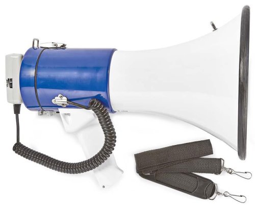Výkonný megafón so zabudovanou sirénou a vysielacím dosahom až 1500 m spoľahlivo zosilní váš hlas v prípadoch, keď treba osloviť dav ľudí. Vďaka integrovanému zosilňovaču s výkonom 25 W dokáže vydávať zvuk s hlasitosťou až 135 dB . Zaiste poteší aj odnímateľný mikrofón , praktický ramenný popruh či regulácia hlasitosti. O napájanie sa stará osem batérií LR20 (D), ktoré udržia megafón v prevádzke až 5 hodín . Batérie nie sú súčasťou balenia.