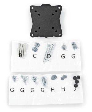 Držiak je vyrobený z kvalitnej ocele v čiernom prevedení a podporuje štandardné VESA rozhranie pre jednoduchú inštaláciu. V balení nájdete kompletný montážny materiál vrátane podrobného návodu na rýchlu a bezpečnú montáž.