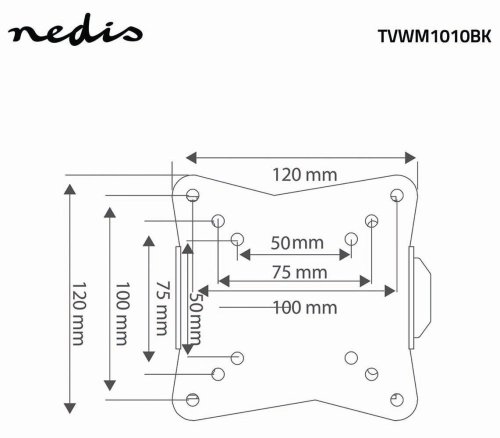 Držiak podporuje tri najbežnejšie VESA štandardy: 50 × 50, 75 × 75 a 100 × 100 mm, čo zaisťuje kompatibilitu s väčšinou televízorov v danej veľkostnej kategórii.