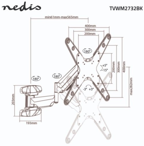 Vďaka teleskopickému ramenu môžete nastaviť vzdialenosť televízora od steny v rozsahu 61-565 mm. Tri otočné body poskytujú maximálnu flexibilitu pri natáčaní a polohovaní displeja podľa aktuálnych potrieb.