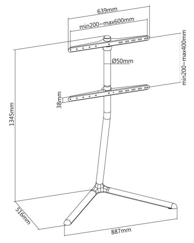 Podlahový stojan na montáž televízie s uhlopriečkou 49" až 70" . Minimalistický, napriek tomu elegantný dizajn sa hodí do každého interiéru. Základňa v tvare písmena V je vybavená gumovými podložkami a spoločne s dodávaným bezpečnostným popruhom zaistí potrebnú stabilitu a minimalizuje riziko prevrhnutia. Poteší tiež vstavaný systém správy kabeláže . Maximálne zaťaženie stojana je 40 kg .