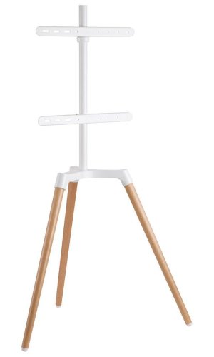 Podlahový stojan na montáž televízie s uhlopriečkou 50" až 65" . Minimalistický dizajn s elegantným dreveným dekorom sa hodí do takmer každého interiéru. Tri nohy vybavené gumovými podložkami spoločne s dodávaným bezpečnostným popruhom zaistia potrebnú stabilitu a minimalizujú riziko prevrhnutia. Poteší tiež vstavaný systém správy kabeláže . Stojan ponúka uhol otáčania až 140 °. Maximálne zaťaženie je 35 kg .