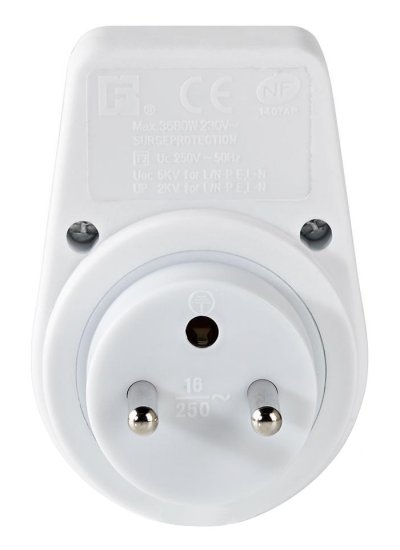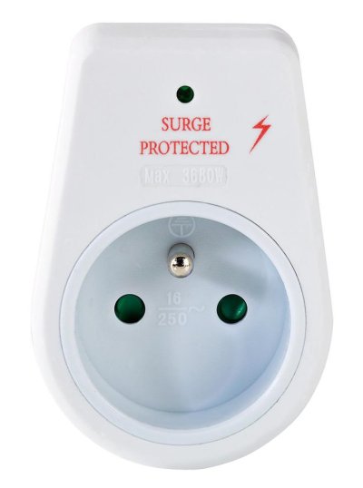 Prepäťová ochrana s bezpečnostnými detskými záslepkami na ochranu elektrických zariadení pred poškodením prúdovou špičkou.