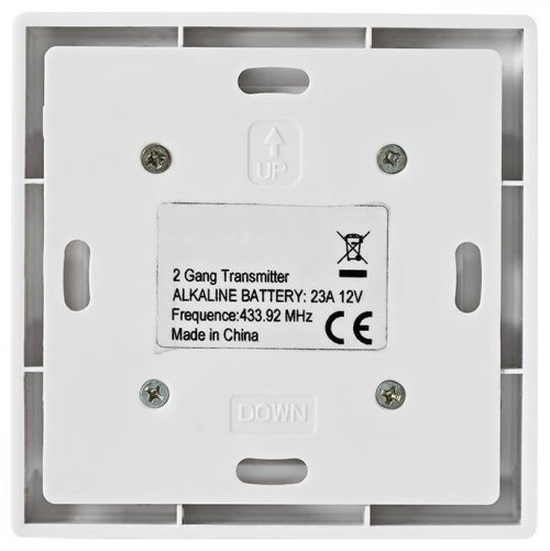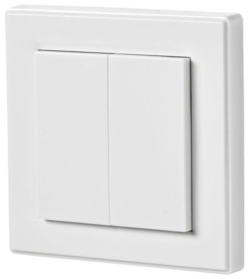 Šikovný vypínač s dvoma tlačidlami pre diaľkové ovládanie svetelných zdrojov a ďalších zariadení. Pre jeden kanál je možné zaregistrovať viac prijímačov, čo umožňuje zapínať a vypínať niekoľko zariadení stlačením jedného tlačidla. Funguje takmer so všetkými existujúcimi systémami s frekvenciou 433,92 MHz bez ohľadu na značku.