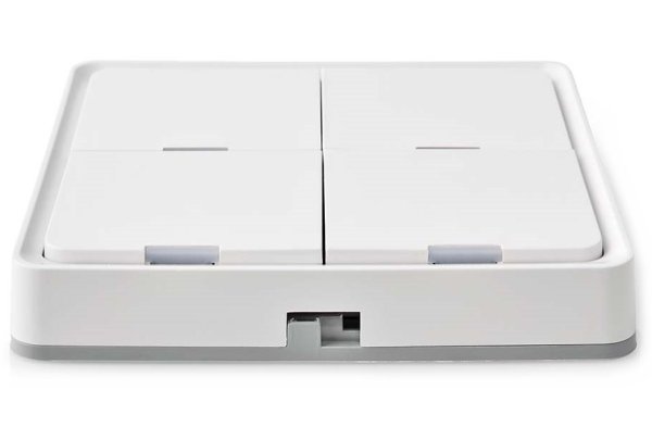 Chytrý vypínač umožňuje ovládanie všetkých produktov z radu Nedis SmartLife . Každé zo štyroch programovateľných tlačidiel môže ovládať ľubovoľný počet zariadení, spúšťať vopred definované scenáre, alebo vypnúť a zapnúť automatizáciu. Správanie tlačidiel je možné naprogramovať aj v závislosti na dennej dobe, dni v týždni či spôsobe stlačenia. Podporované sú tri spôsoby stlačenia tlačidla, krátke, dlhé a dvojité stlačenie. Po pripojení vypínača k chytrej bráne Nedis Zigbee je možné v mobilnej aplikácii Nedis SmartLife vykonať nastavenie akcií pre jednotlivé tlačidlá. Upevnenie na akýkoľvek povrch je možné pomocou skrutiek či obojstrannej lepiacej pásky. Napájanie ovládača zaisťuje jedna batéria CR2032 (súčasťou balenia), ktorá pri bežnom používaní vydrží až 1 rok.