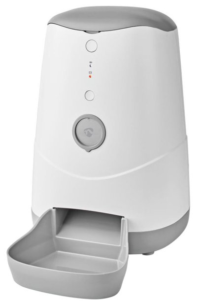 Chytrý automat na krmivo umožňuje automatické kŕmenie domácich maznáčikov bez nutnosti vašej prítomnosti. Okrem časov je možné nastaviť aj množstvo krmiva, a to v dávkach s objemom 10 ml. Zásobník na uskladnenie pojme až 3,7 l suchého krmiva . Po prepojení s aplikáciou Nedis SmartLife prostredníctvom Wi-Fi je možné okrem naplánovania automatického kŕmenia aj ručné kŕmenie a prijímanie upozornení na vydané či dochádzajúce krmivo . Napájanie je realizované cez micro USB konektor. Súčasťou balenia je napájací adaptér a USB kábel. V prípade výpadku elektriny je možné automat napájať aj z powerbanky (nie je súčasťou balenia).
