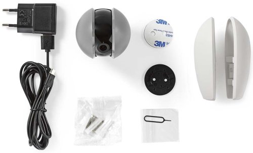Súčasťou balenia je alternatívny farebný kryt, držiak kamery, lepiaca podložka, USB kábel a napájací adaptér.