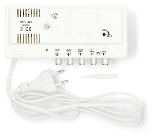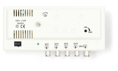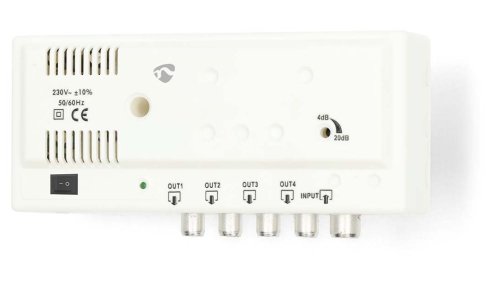 Zosilňovač umožňuje pripojenie až štyroch prijímačov (TV/rádio) k jednej anténe s aktívnou distribúciou signálu v pásme 47–694 MHz . Vďaka integrovanej regulácii zisku 0–18 dB môžete presne prispôsobiť vstupnú úroveň zosilňovača výstupnej úrovni zdroja pre optimálnu kvalitu signálu.
