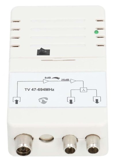 Zosilňovač je vybavený LTE-700 filtrom , ktorý účinne potláča rušenie od 5G sietí a zaisťuje stabilný príjem televízneho signálu. Kompaktné biele prevedenie z materiálu ABS a zinková zliatina zaručuje spoľahlivú prevádzku s integrovaným 230 V napájacím adaptérom .
