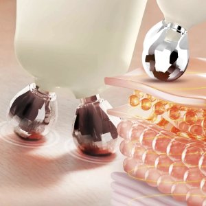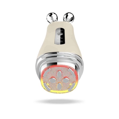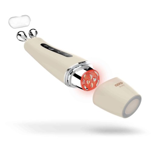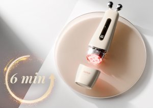 Dve masážne hlavice: Prístroj obsahuje dva rôzne nástavce, takže si môžete prispôsobiť rutinu starostlivosti o pleť potrebám vašej pleti. Jedna strana je vybavená diamantovými masážnymi hlavicami, zatiaľ čo druhá má plochú hlavicu s ôsmimi masážnymi bodmi. Diamantové masážne hlavice jemne kĺžu po línii čeľuste a tvárí. V kombinácii s EMS jemne stimulujú tvárové svaly a pomáhajú definovať ovál a zvýrazniť tvar V presne tam, kde je to potrebné. Plochá hlavica s ôsmimi masážnymi bodmi vyžaruje červené a žlté LED svetlo a pomocou zvukových vibrácií stimuluje mikrocirkuláciu a zlepšuje pevnosť pokožky. Striedajte príslušenstvo pre pestrú rutinu, ktorá udrží vašu starostlivosť o pleť flexibilnú a prispôsobenú vašim preferenciám.