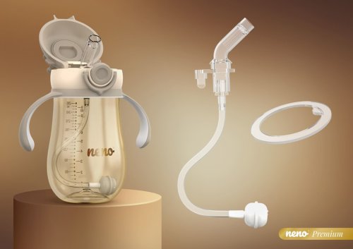 Neno Mio 2 je praktická náhrada dojčenskej fľaše a skvelá pomôcka ako naučiť dieťa piť samostatne. Nepriepustná a nárazuvzdorná fľaša má slamku so závažím, ktorá umožňuje dieťaťu piť v rôznych uhloch. prehĺtaní.