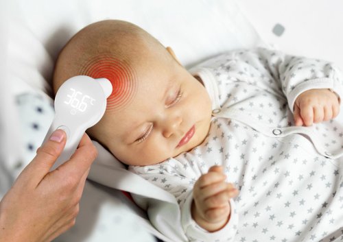 Meranie teploty na čele: Meranie teploty na čele je obzvlášť užitočné pre novorodenca a malé deti. Zmeria teplotu za 1 sekundu.