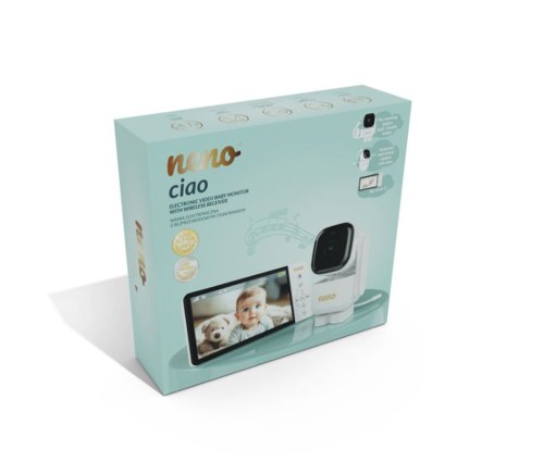 Neno Ciao je moderná elektronická videoopatrovateľka s bezdrôtovým prijímačom a 5palcovým displejom. Vďaka otočnej kamere s funkciou Pan & Tilt (355 ° horizontálne, 90 ° vertikálne) môžete sledovať celú miestnosť z pohodlia kdekoľvek. Monitor je vybavený dvojsmernou komunikáciou, snímačom teploty, 8 upokojujúcimi uspávankami a nočným režimom, ktorý podporuje starostlivosť počas dňa aj noci. Vďaka VOX technológii sa obrazovka zapne len pri detekcii zvuku, čím šetrí energiu. Silná vstavaná batéria prijímača umožňuje používanie až do 12 hodín bez nabíjania. Monitor má dosah až 300 metrov na otvorenom priestranstve a podporuje pripojenie ďalšej kamery na rozšírenie dohľadu.