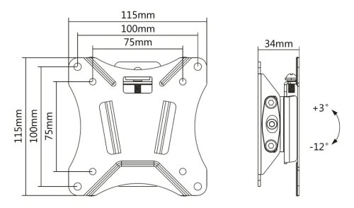 Sklopný nástenný držiak pre ploché obrazovky s uhlopriečkou od 10" do 30" a hmotnosťou až 25 kg . Držiak má hĺbku 3,4 cm a je vhodný pre obrazovky, ktoré zodpovedajú štandardom VESA 75 × 75 a 100 × 100 mm . Všetok inštalačný materiál je súčasťou balenia.